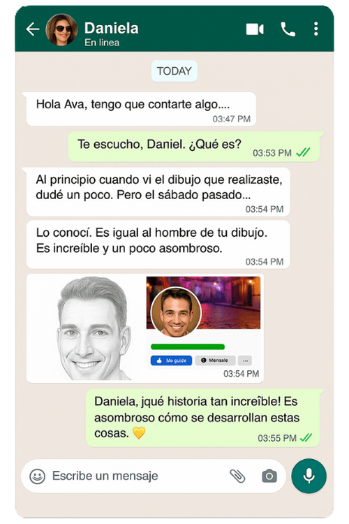 Soy Ava López, vidente y artista intuitiva. Desde niña descubrí que podía percibir la energía de las personas más allá de lo visible. Esta habilidad me ha permitido, con el tiempo, no solo dibujar, sino también plasmar la esencia de aquellos que están destinados a cruzar tu camino.